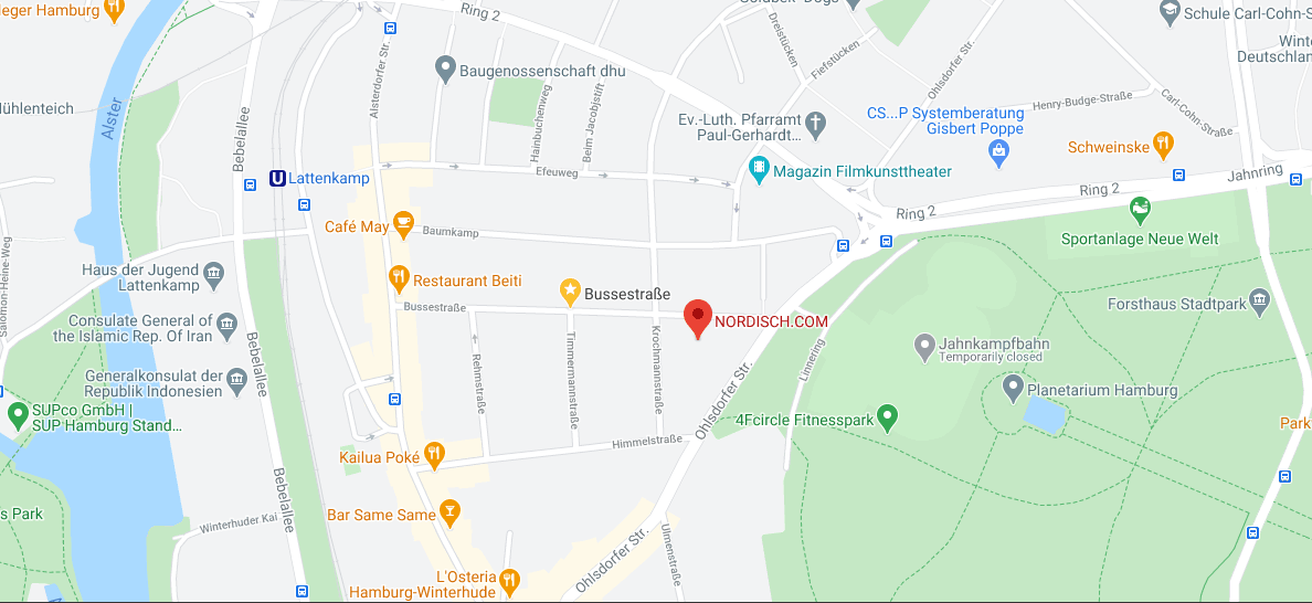 Wenn Sie sich selbst ein Bild von uns machen wollen oder schon auf dem Weg zu uns sind, dann finden Sie uns mitten in Hamburg / Winterhude.Aber ganz ehrlich: Eigentlich freuen wir uns alle über Ihren Anruf, Ihre Mail oder ein einfaches Hallo. Wir sind gespannt, wohin uns das vielleicht gemeinsam führt.NORDISCH.COMbüro für kommunikation und designBussestraße 52a22299 HamburgT +49 40 20 22 67 85F +49 40 20 22 67 87E info@nordisch.com